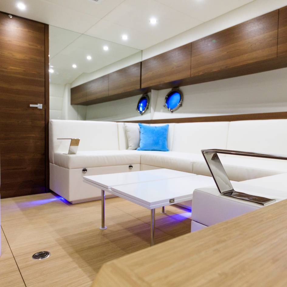Jede Yacht ist etwas Besonderes, was sich am Innenausbau widerspiegelt. Die Wahl der Materialien sowie die harmonische farbliche Abstimmung gibt dem gesamten Interieur ein unverwechselbares Design.